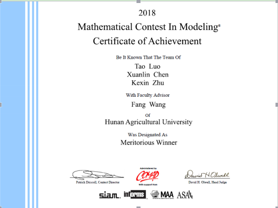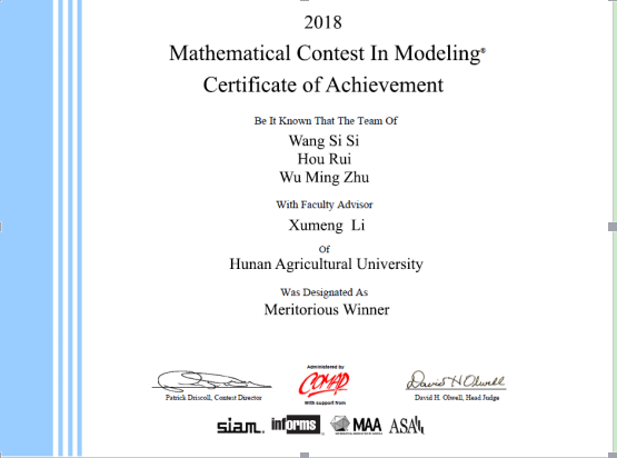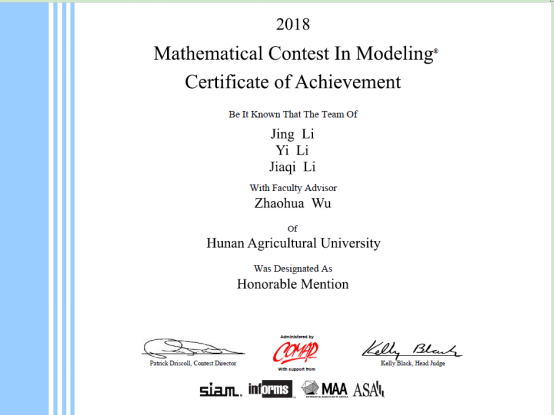 我校学子喜获2018年美国大学生数学建模竞赛多项一等奖