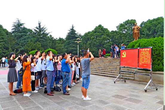 (理学院 何恩祺)上午9时许,在蒙蒙细雨中,师生们抵达刘少奇同志故居,在景区工作人员的带领下,缓步走到刘少奇同志雕像前,瞻仰这位为新中国成立和建设事业作出贡献的伟大的马克思主义者。在信息与计算科学学生党支部书记何恩祺老师的带领下大家重温了入党誓词,表达了对伟人的崇高敬意。