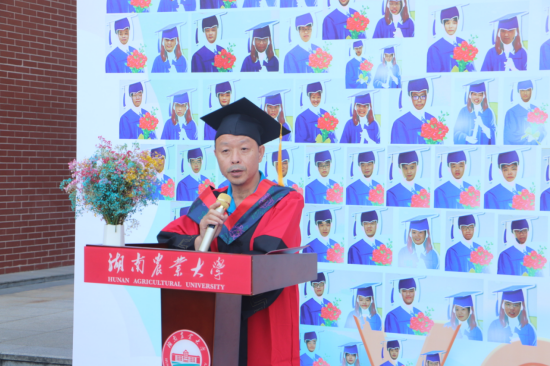 周文新院长寄语。他表示化材学子都是优秀的,希望同学们能在未来的工作中秉承农大校训,日后为强农兴农贡献一份自己的力量。接下来是拨穗环节,同学们依次有序地接受“拨穗”,准备好展翅高飞。