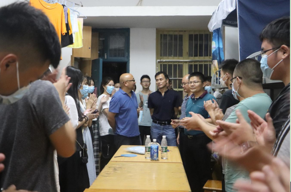 走进新生寝室的那一刻,寝室内响起了热烈的掌声。恰逢2021级各班班主任正在各自班级寝室内召开新生入学的第一次班会,新生全员到齐。裴虎副书记以轻松欢快的语气向同学们介绍了学院的各位领导、老师、辅导员以及主席团成员,他期望新加入Vwin德赢唯一官方网站大家庭的同学们在大学期间可以取得各自想要的成绩,圆满完成学业。