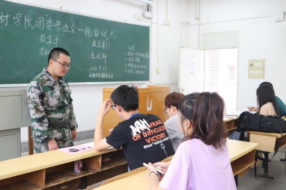 面试前,各部门负责人与工作人员陆续进入招新教室,提前做好面试的准备。面试过程中,一个个新生静坐在各部门所属区域,时刻等待被面试。各部门负责人员提出的问题由易入难,逐步攻克面试者的心理防线,面试者带着紧张的语气不断化解难题,展现了面试者良好的心理素质以及优秀的处理能力。