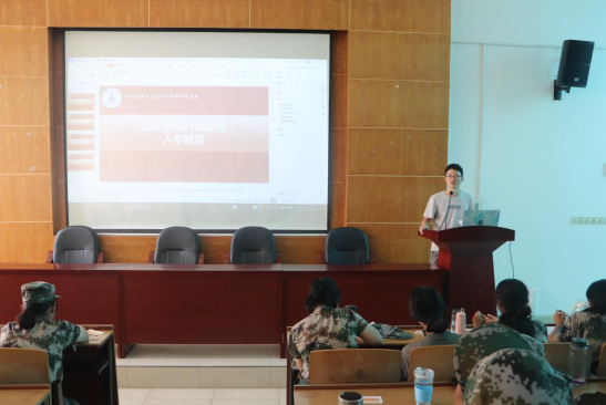 紧接着由周文老师就校规校纪、爱国主义、诚信感恩开展了重要讲座。周文老师从学院发展、师资队伍及学生情况、学科建设、实验室条件及实践平台建设等方面进行详细介绍,就办学定位与人才培养目标做重点介绍,强调同学们要爱党爱国、爱校荣校,爱院荣院,希望同学们都能够成为素质卓越、通专结合、全面发展、品德高尚的化学专业人才。