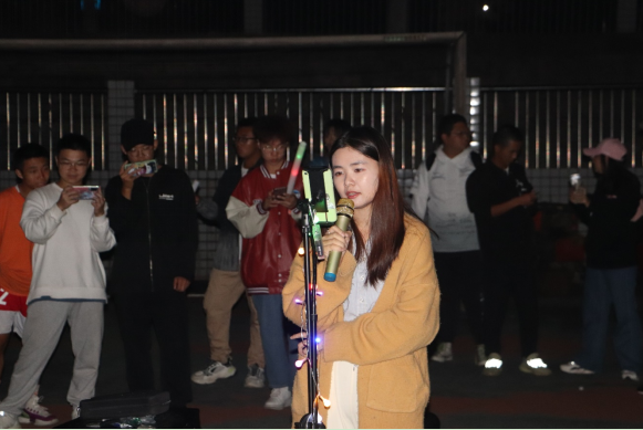 本次花菜音乐文化广场的主持人为谷星宇同学,以“秋冬印象”为主题展开活动,受到众多学生的期待与追捧,现场人声鼎沸,呼声不断,每个人手上都拿着荧光棒,在黑夜中呈现五彩的光芒,为自己最爱的歌手加油助威“未见其人,先闻其声”,李翀宇同学以一首《情歌》渲染了一种恬静,静谧的气氛,正如丝丝秋风吹过每位同学的心弦,让在场所有人倍感温暖,寒意消散,煦暖油然而生,征服了在场的同学,博得了场下一阵热烈的掌声,尖叫声不绝于耳。随后,新生马圳的舞蹈《I can' stop me》掀起了声声呐喊,带着同学们进入到欢快娱乐的舞蹈殿堂,一步步把音乐节推向了高潮。最后程浩同学的一首《星月神话》,此次音乐文化广场圆满结束。