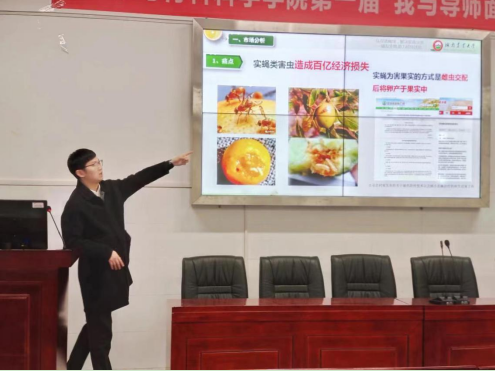 莫博程结合各团队汇报情况,对参赛选手的问题进行了解答,并结合自身参赛经验分享了一些比赛技巧。他指出,同学们汇报自己项目的时候,思路清晰最重要,突出重点与产品竞争优势,阐明自己的营销计划和未来项目的发展规划。最后,他通过展示自己比赛路演PPT,向同学讲解了汇报过程中容易忽视的细节及PPT制作时的逻辑思路,希望同学们能够精益求精,完善参赛PPT与项目计划书,争取在大赛中取得优异的成绩!