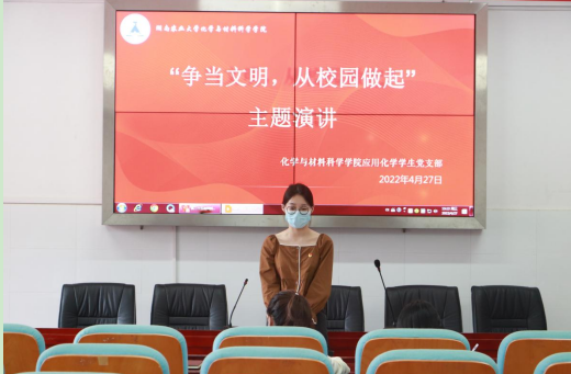 参加本次主题演讲的为应化、材化党支部入党积极分子,主持分别人为应化党支部黄裕梦同志和材化党支部李莉璇同志。比赛伊始,主持人强调了活动的意义,并详述了评分规则。紧接着,各位选手紧紧围绕演讲主题展开自己的思维,亮出自己的看法。演讲中各位同志大显身手,例如张文俊同学结合时事和自身经历,娓娓道来,讲述大学生文明道德重要性。“德不优者,不能怀远;才不大者,不能博见。”品德不优秀的人,不会胸怀远大的理想;才能不高超的人,不会拥有广博的见识。李雨晨同学则以“于细微处见精神”,呼吁同学们应该将文明融入日常,春风化雨润物无声。