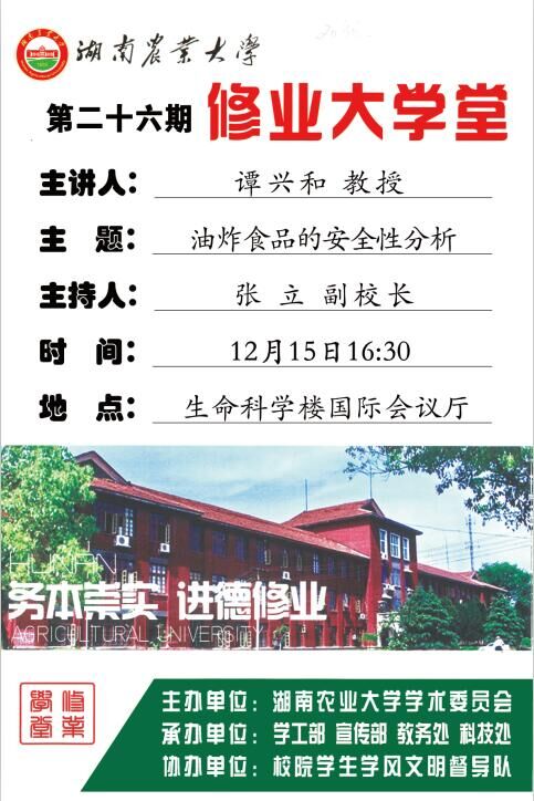第26期修业大学堂——谭兴和教授主讲《油炸食品的安全性分析》