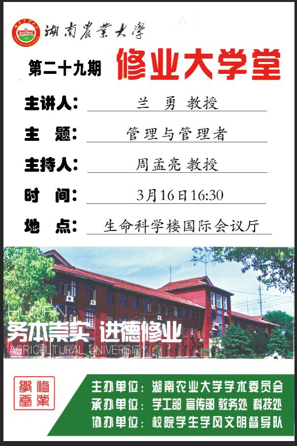 第29期修业大学堂——兰勇教授主讲《管理与管理者》