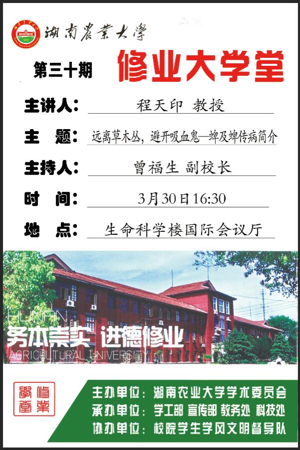 第30期修业大学堂——程天印教授主讲《远离草木丛,避开吸血鬼——蜱及蜱传病简介》