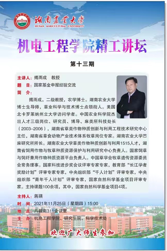 机电工程学院精工讲坛第十三期