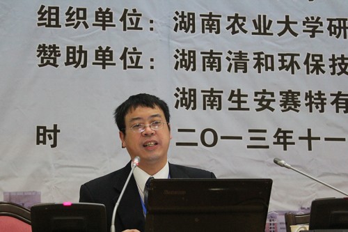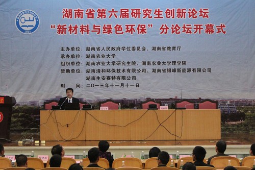 2013年11月11日上午,由湖南农业大学承办,研究生院与我院共同组织的湖南省第六届研究生创新论坛“新材料与绿色环保”分论坛在图书馆大成厅举行。论坛特邀了复旦大学化学系教授、博士生导师、国际纯粹应用化学联合会共同主席吴宇平老师做学术讲座,讲座主题为“绿色的高能量密度超级电容器”。报告由卢向阳副校长主持。 在历时一个小时的报告中,吴教授旁征博引、娓娓道来,整个报告主要从“超级电容器与锂离子电池性能对比”、“超级电容器的储能原理”以及“超级电容器的高能量密度”三个方面展开。他以案例分析的方法重点强调了水系超级电容器的高能量密度及绿色环保性能。同时,吴老师教导同学们只有不畏惧权威、超越权威,才能充分地展现出自己的创新性思维。另外,他还建议同学们要以自己的导师为标杆,并不断的超越自己的导师,这样才能体现出导师的价值。整个报告中,吴老师语言诙谐幽默,举例翔实,大成厅内思维的碰撞让同学们激情满怀。本次论坛报告拓展了同学们的创新性思维,为我校良好学术氛围的营建再添新砖。