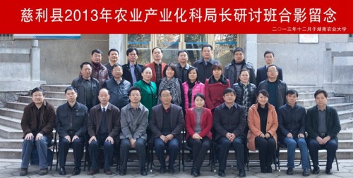 12月2日上午,由慈利县人民政府与湖南农业大学联合举办,我校新农村发展研究院主办、我院承办的慈利县2013农业产业化科局长研讨班开班仪式在老T4举行。易自力副校长、省农业产业化服务局农业产业化指导处处长罗亚明、慈利县副县长陈艳静、学校新农村发展研究院专职副院长金可元、学院院长周文新以及来自于慈利县农办、农业局、畜牧局、林业局、农机局等14个单位的22名学员参加了开班仪式。开班仪式上,学院周文新院长向各位领导和学员的到来表示热烈欢迎,并表示会克服困难,精心组织,为广大学员创造良好的学习、交流环境,争取把这次培训班打造成一个相互学习、增进了解、促进友谊、携手共进的平台。慈利县陈艳静副县长就开班的目的及意义进行了说明,要求研讨班学员遵守纪律,努力学习,注重实效,学有所获。易自立副校长在总结讲话中简要介绍了学校以及学校新农村发展研究院的总体情况,希望学员们珍惜机会,在学习交流中开拓视野,丰富思维,同时希望慈利县与我校加强联系,共同为我省农业产业化发展做贡献。开班仪式后,领导、嘉宾与学员们合影,并开始了第一堂课的学习。本次研讨班是慈利县继上半年在我校举行的农业产业化培训班后的又一重要举措,研讨班学员均为慈利县农业产业化相关单位负责人,12月2日至5日将在我校接受专项培训。培训班邀请了湖南省发改委、湖南省农业产业化服务局、我校相关专家,省内农业产业化相关企业负责人等就农业产业化政策及如何推进农业产业化发展、生态农业发展、土地政策及农民专业组织建设等内容授课。期间还将安排学员参观考察望城国家农业科技园区、长沙都遨农业生产有限公司的休闲农庄,还将赴大通湖考察水产养殖基地、口口香米业公司、锦大渔村等基地和企业。| 点击下载文件: |