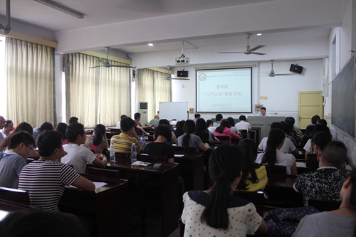 根据学校党委关于“三严三实”专题教育活动的安排,理学院党委于6月11日下午在三教305多媒体会议室举行“三严三实”专题党课学习。党课由学院党委书记邓白平主讲,院长周文新主持,学院全体党员参加了学习。邓白平书记紧紧围绕“三严三实”教育工作的要求,结合学院实际,以《践行“三严三实”,推动学院内涵式发展》为主题,从三个方面进行党课讲授:一是深入剖析“三严三实”的丰富内涵和重要意义,梳理“三严三实”存在的内在逻辑关系;二是联系学院实际情况,坚持问题导向,深入查摆“不严不实”问题和根源;三是就如何扎实开展好“三严三实”的专题教育提出了相关思路:首先是抓好理论学习,突出思想建党;其次是抓好自查自纠,突出整改落实;最后是抓好干事创业,突出内涵发展。在党课最后,邓书记指出搞好这次专题教育,对学院转向内涵式发展意义重大,学院要扎扎实实把专题教育组织好、开展好,建设一支政治坚定、能力过硬、作风优良、奋发有为的领导班子及党员干部队伍,团结带领全院教职工为学院发展而努力奋斗。周文新院长在对党课进行总结时指出,学院领导班子及党员干部应高度重视“三严三实”专题教育,从严打造一支对党忠诚、身心干净、敢于担当的干部队伍,确保专题教育活动取得实效,有力推动学院内涵式发展。(理学院唐勇)