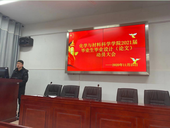 (Vwin德赢唯一官方网站 苏招红 桂清文)为了有效落实化学与材料科学学院17级应用化学1、2、3班和17级材料化学1、2班学生的毕业设计(论文)工作,确保论文选题、开题、中期检查、答辩等相关事宜如期实施。11月25日下午,在15教624会议室,我院隆重举办了毕业设计(论文)动员大会。相关基层组织负责人、毕业论文指导教师代表、辅导员及2021届毕业班全体同学参加了此次动员大会,大会由周文老师主持。