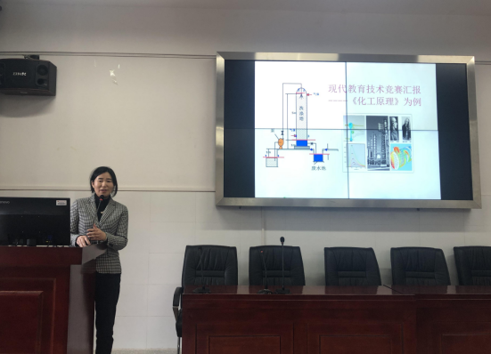 交流会上,湖南省信息化教学一等奖、湖南农业大学首届“教学卓越奖”获得者蒋红梅老师,就如何利用现代教育技术提升课堂教学质量,首先与学院的老师们进行了交流。蒋老师通过展示《化工原理》这门课程,从如何设计课件、剪辑及教学效果向老师们做了详细的解说,并就教学中通过视频、动画、图片等形式用来辅助学生进行学习,更好的呈现课堂效果,提高学生的学习兴趣做了经验介绍。