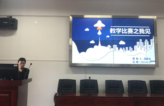 校级教师教学能力竞赛一等奖获得者龙卧云老师的发言亲切自然,与在座的老师们分享了他在课堂教学竞赛中如何选内容、导课程、谈课件、说过程。龙老师提出在日常教学与竞赛中都要做到主题明确、难易结合;方式新颖、巧用教具;图文并茂、删繁就简,同时,龙老师就教学过程中如何做好教学互动,挖掘课程思政元素做了经验介绍。