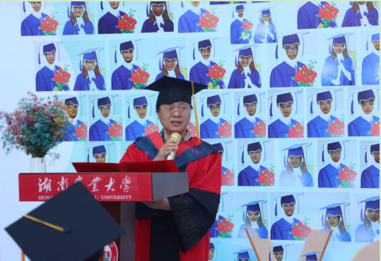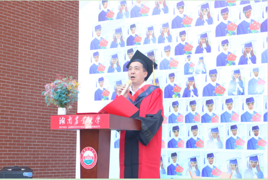 周文新院长寄语。他表示化材学子都是优秀的,希望同学们能在未来的工作中秉承农大校训,日后为强农兴农贡献一份自己的力量。接下来是拨穗环节,同学们依次有序地接受“拨穗”,准备好展翅高飞。