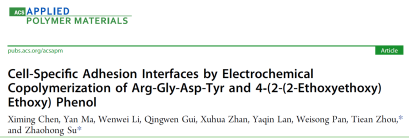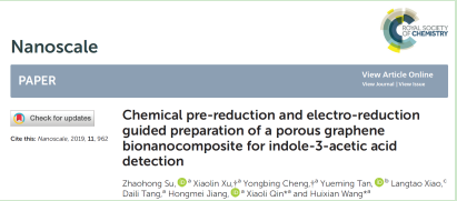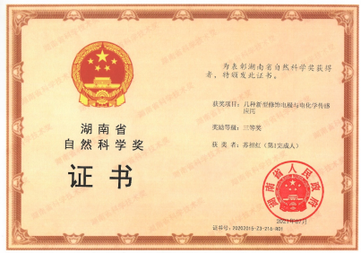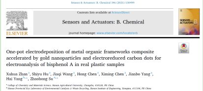 (Vwin德赢唯一官方网站 苏招红,胡诗于)近期,vwin德赢AC米兰官网苏招红副教授团队在生物传感材料领域取得系列研究进展,获得湖南省自然科学三等奖(20202015-Z3-216-R01),在国际权威杂志Sensors and Actuators: B. Chemical(IF:7.46)上发表题为“One-pot electrodeposition of metal organic frameworks composite accelerated by gold nanoparticles and electroreduced carbon dots for electroanalysis of bisphenol A in real plastic samples”的文章,在ACS Applied Polymer Materials(IF:4.089)上发表题为“Cell-Specific Adhesion Interfaces by Electrochemical Copolymerization of Arg-Gly-Asp-Tyr and 4-(2-(2-Ethoxyethoxy) Ethoxy) Phenol”的文章,在Nanoscale(IF:7.79)上发表题为“Chemical pre-reduction and electro-reduction guided preparation of a porous graphene bionanocomposite for indole-3-acetic acid detection”的文章,在ACS Applied Materials & Interfaces(IF:9.229)上发表题为“One-Step Electrochemical Growth of 2D/3D Zn(II)-MOF Hybrid Nanocomposites on an Electrode and Utilization of a PtNPs@2D MOF Nanocatalyst for Electrochemical Immunoassay”的文章。参与项目研究的陈曦铭同学以优异的成绩获得厦门大学夏令营优秀营员并保送厦门大学化学化工学院硕博连读。以上研究得到国家自然科学基金(21305039, 31870933, 22004034)和湖南省自然科学基金(14JJ3097, 2020JJ4346, 2020JJ5226)、湖南省教育厅基金(20K063, 19C0905)、及湖南农业大学1515人才基金等资助支持。