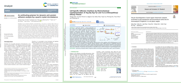 (以第一作者在Analyst和ACS Applied Polymer Materials 期刊上发表SCI论文共两篇,以其他作者在Sensors and Actuators B: Chemical期刊发表论文一篇)