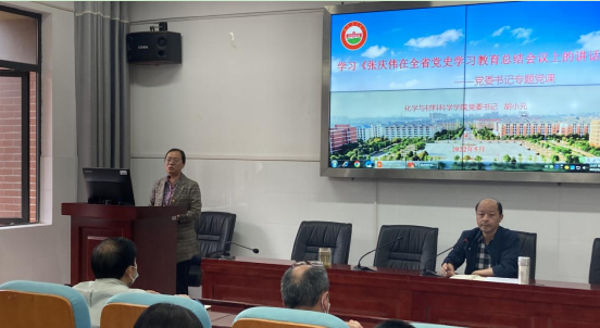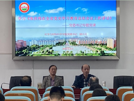 (Vwin德赢唯一官方网站 廖渐)学史明理、学史增信、学史崇德、学史力行。5月19日下午,学院党委书记胡小元以学习《张庆伟在全省党史学习教育总结会议上的讲话》为题,在第十五教学楼624为全体师生党员上党课。会议由学院院长周文新主持。