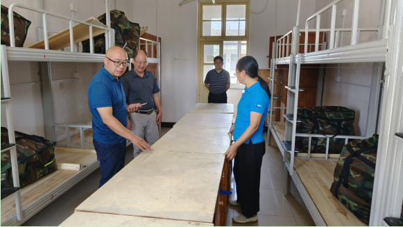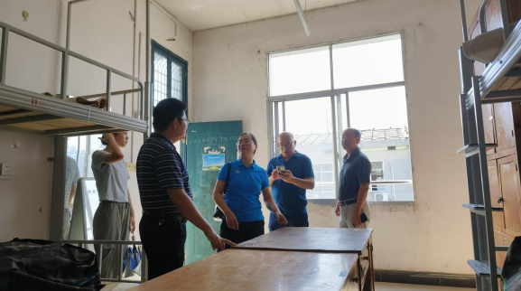 院领导一行先后到男生宿舍、女生宿舍,一间间实地检查了新生宿舍设施情况,针对不少寝室存在的桌椅松动、窗户不严、锁扣不牢等问题,一一记录,并上报后勤服务中心进行维修解决。对其宿舍卫生和楼道、房间、淋浴间等具体内务进行了要求,强调一定要打扫干净、彻底,不留一个死角。特别是淋浴间,务必要清理干净,洁白无瑕,给新生入校营造一个舒适的环境,感受到家的温馨。